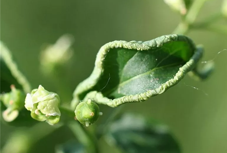 Die auffälligen aber harmlosen Deformationen werden durch die Blattrandgallmilbe (Eriophyes convolvens) hervorgerufen. Die winzigen, mit bloßem Auge nicht erkennbaren Tiere verursachen durch ihre Saugtätigkeit die Blattrollung.