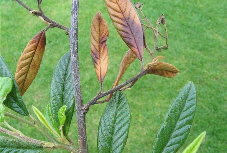 Im Frühjahr oder Sommer beginnen Blüten oder Triebe der Felsenmispel plötzlich zu welken. Sie verfärben sich anfänglich braun, später schwarz.