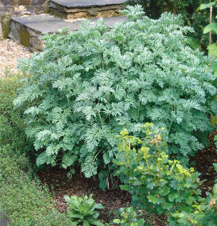 Der Echte Wermut (Artemisia absinthium) ist eine Kräuterpflanze mit einem aromatischen Geschmack. Seine silbrigen Blätter sind gefiedert. Für das optimale Wachstum des Echten Wermuts werden ein sonniger Standort und durchlässiger, nährstoffreicher Boden benötigt.