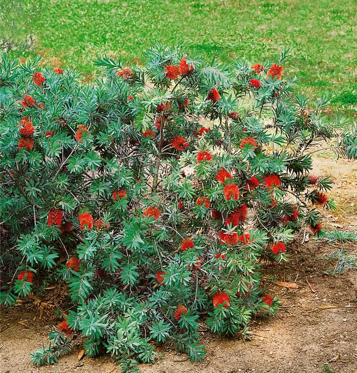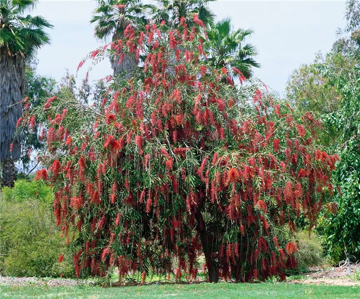 Callistemon viminalis kann eine Höhe von 4 - 6 m und eine Breite von 3 - 4 m erreichen.