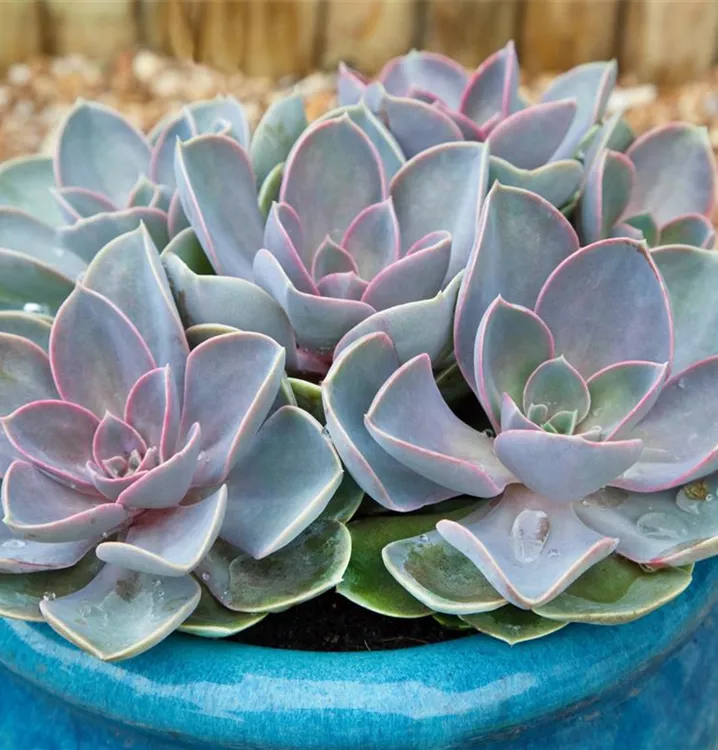 Die immergrünen Blätter der Echeverie sind mehrfarbig, dickfleischig.