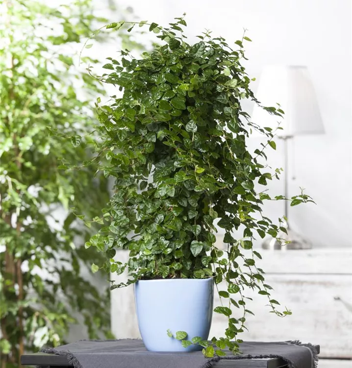 Die Kletter-Feige (Ficus pumila) trägt mittelgrüne Blätter. Diese aufrechte, verzweigte und kletternde Pflanze gedeiht am besten an einem sonnigen bis halbschattigen Standort.