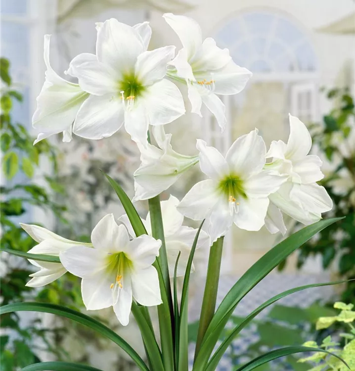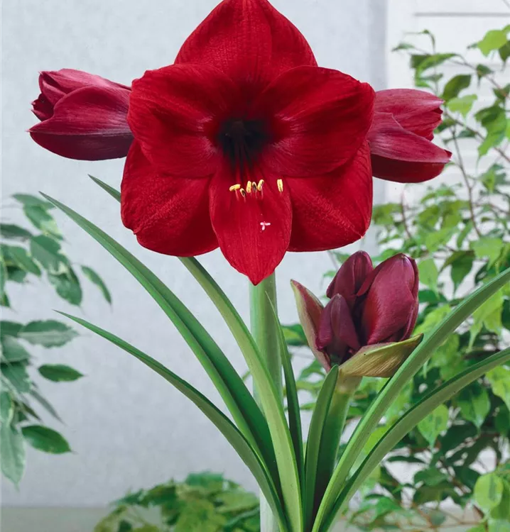 Der Ritterstern (Hippeastrum) blüht über Monate hinweg. Je nach Sorte, erscheinen die dekorativen Blüten in den Farben Rosa, Rot und Weiß. Bevorzugt wird ein sonniger bis halbschattiger Standort und eine durchlässige Erde.
