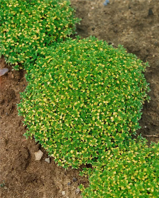 Der Hänge-Zitronen-Thymian 'Sambesi' (Thymus x citriodorus) ist eine Kräuterpflanze mit einem aromatischen Geschmack. Seine hellgrünen, gelb-grünen Blätter sind eiförmig. Für das optimale Wachstum des Hänge-Zitronen-Thymians 'Sambesi' werden ein sonniger Standort und durchlässiger, nährstoffreicher Boden benötigt.