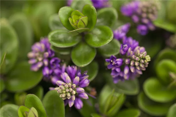 Eine Strauchveronika ist ein sehr dekoratives Element auf einer Terrasse. Zwischen den länglichen Blättern klettern im Hochsommer große, lippenartige Blüten hervor, die mit ihrer violetten Farbe wunderschöne kräftige farbige Streifen in dem immergrünen Laubgehölz erzeugen. Das buschige Wachstum und die Höhe von 40 bis 60 Zentimetern macht diese Veronika zu einem erstklassigen Kandidaten für einen Kübelbewohner.
