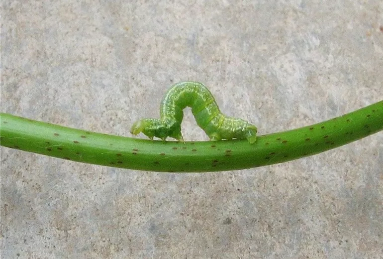 Zur Verpuppung lassen sich die Tiere an einem Gespinstfaden zu Boden, um sich dort zu verpuppen.