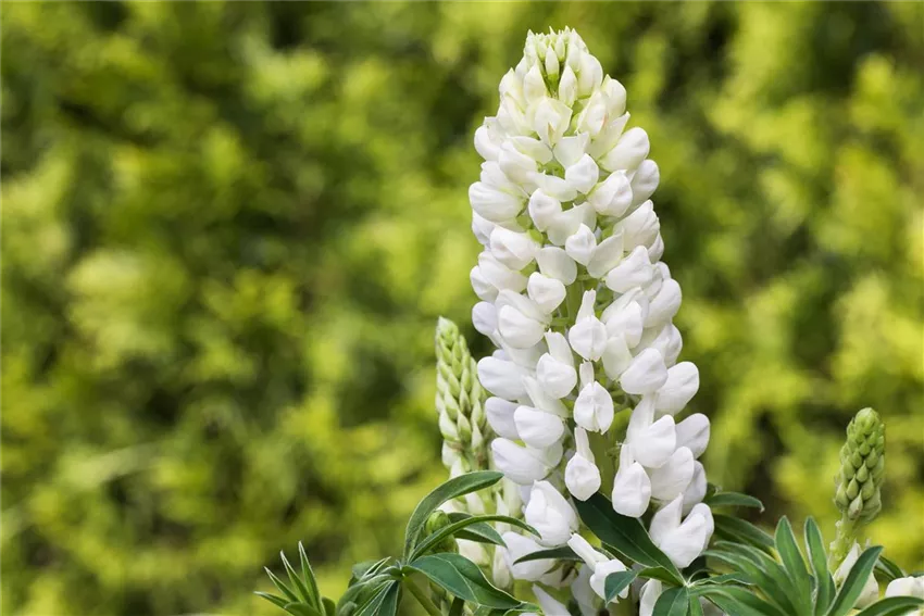 Nicht essbare Gartenlupinen gibt es inzwischen in fast allen Farben, es sind im Allgemeinen Hybride. So streckt „Mein Schloss“ ihre ziegelroten Blütenstände in die Höhe, während „Edelknaben“ karminrot blühen. Und in den naturnahen Tönen weiß, rosa und blau kommen zum Beispiel „Fräulein“, „Schlossfrau“ und „Kastellan“ daher.