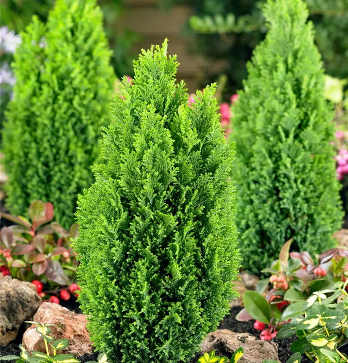 Die Gelbe Kegelzypresse 'Ellwood´s Gold' weist eine gute Frosthärte auf.