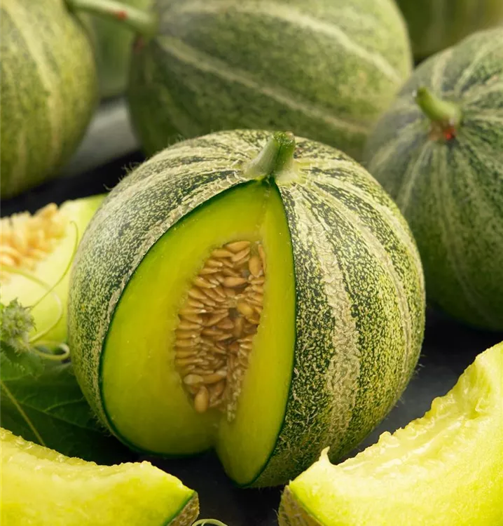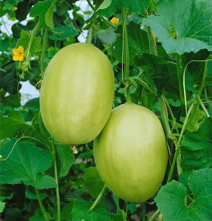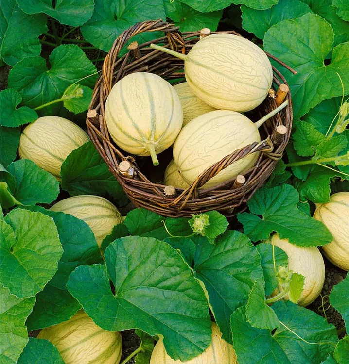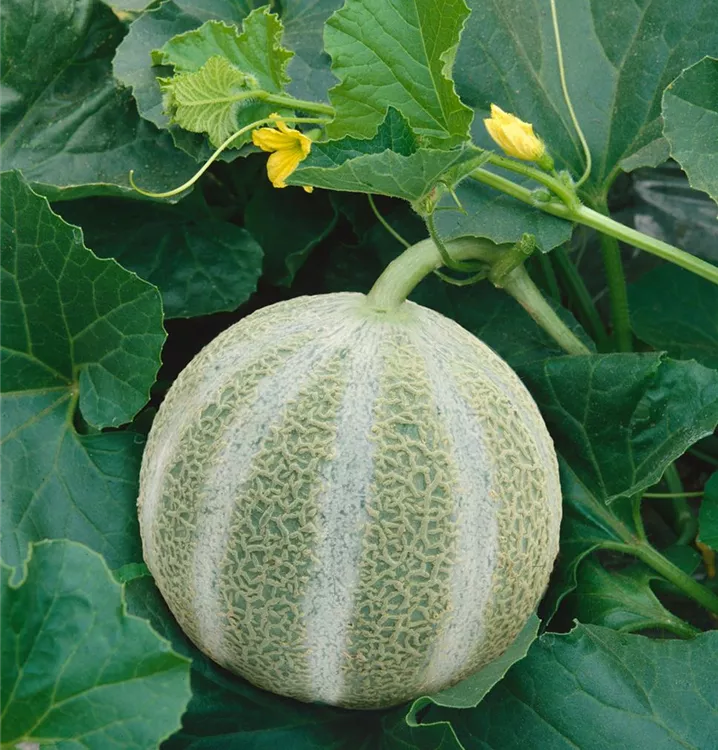 Die Zuckermelone (Cucumis melo) bildet Früchte, die süß schmecken und bereits ab Juli geerntet werden können. Für das optimale Wachstum der Zuckermelone werden ein sonniger Standort und durchlässiger, nährstoffreicher Boden benötigt.