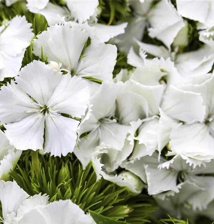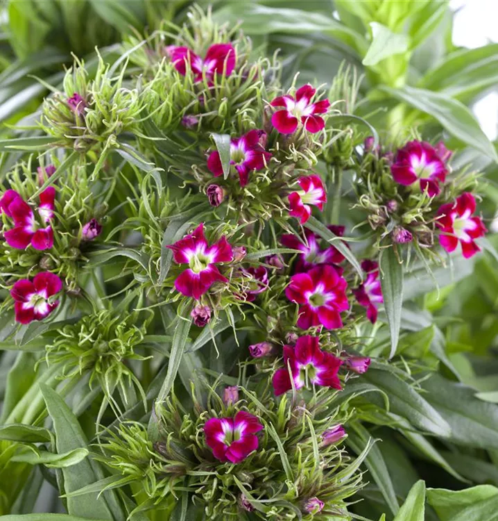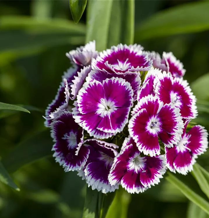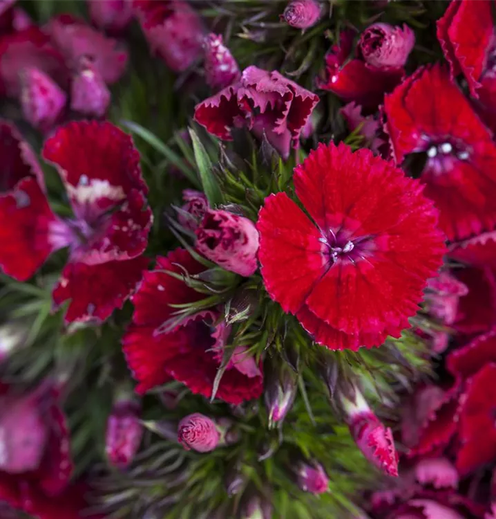 Die Garten-Bart-Nelke (Dianthus barbatus) ist eine buschige Staude, die, je nach Sorte, radförmige Blüten in verschiedenen Farben bildet. An einem sonnigen Standort mit durchlässigem, nährstoffreichem Boden erreicht sie gewöhnlich eine Höhe von ca. 60 cm und wird ca. 50 cm breit. Die Garten-Bart-Nelke ist gut frostverträglich.
