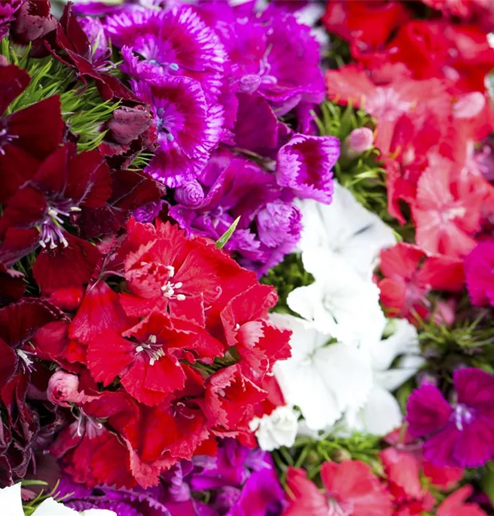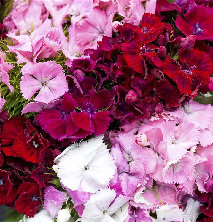 Je nach Sorte, bildet Dianthus barbatus radförmige Blüten in verschiedenen Farben. Diese sind angenehm duftend.