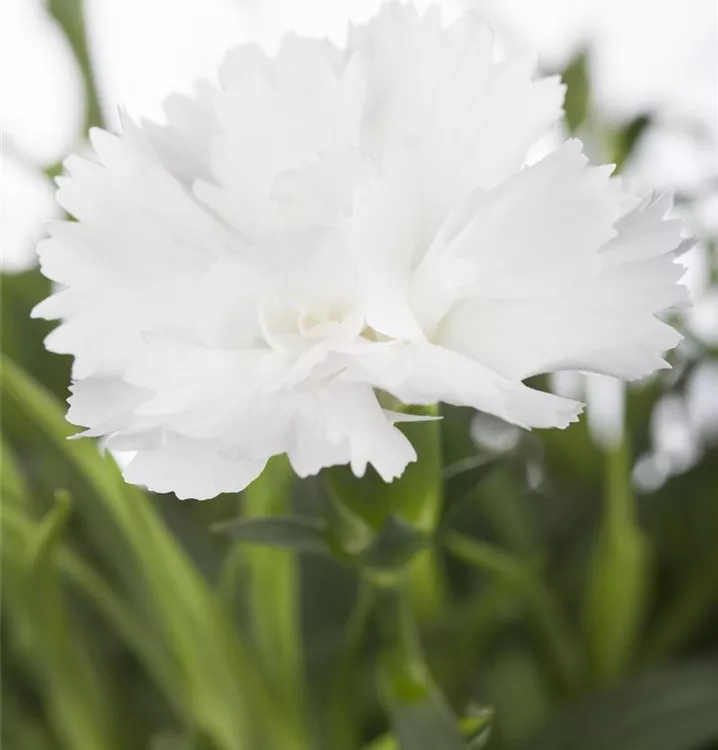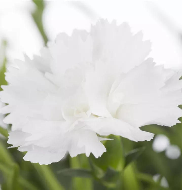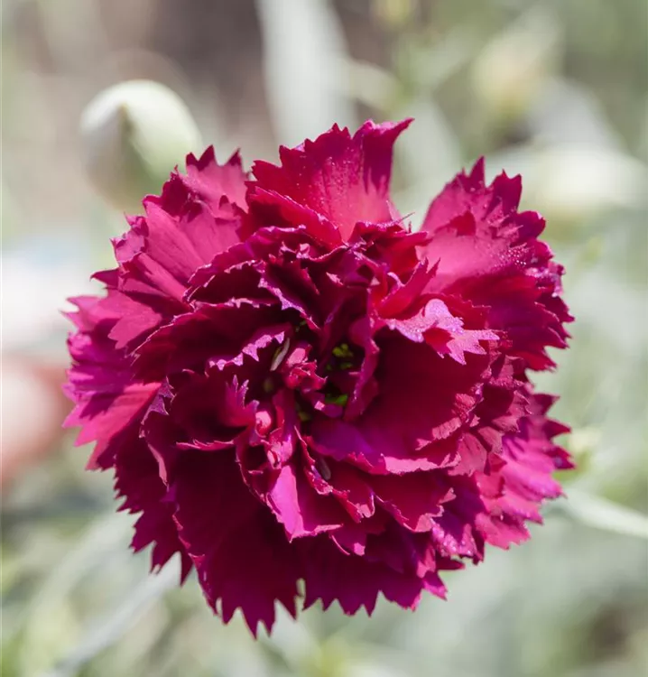 Die Gartennelke (Dianthus caryophyllus) ist eine aufrechte wintergrüne Staude, die, je nach Sorte, radförmige Blüten in verschiedenen Farben bildet. An einem sonnigen Standort mit durchlässigem, humosem, nährstoffreichem Boden erreicht sie gewöhnlich eine Höhe von ca. 50 cm und wird ca. 30 cm breit.
