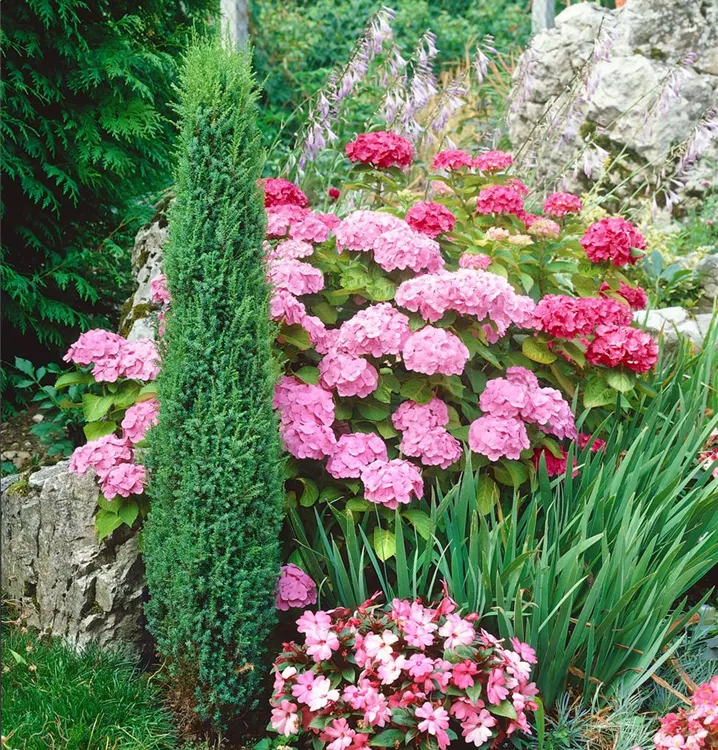Besonders dekorativ sind die schwarz-braunen Zapfen von Juniperus communis. Diese erscheinen ab September.