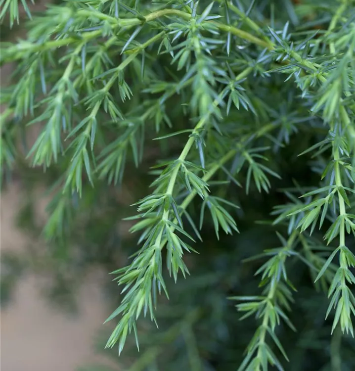 Der Irische Säulenwacholder 'Hibernica' ist immergrün. Seine Nadeln sind dunkelgrün, weich.