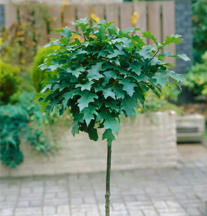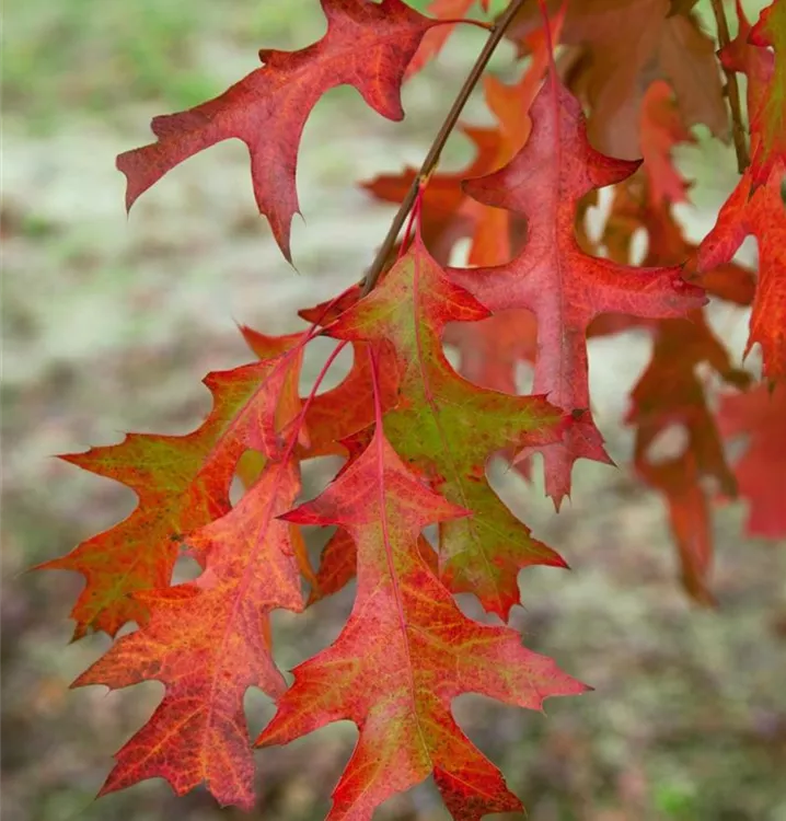 Die Sumpf-Eiche (Quercus palustris) ist ein kegelförmiger, lockerer Baum mit dekorativen, runden Früchten. Die Blüten erscheinen je nach Sorte in verschiedenen Farben.