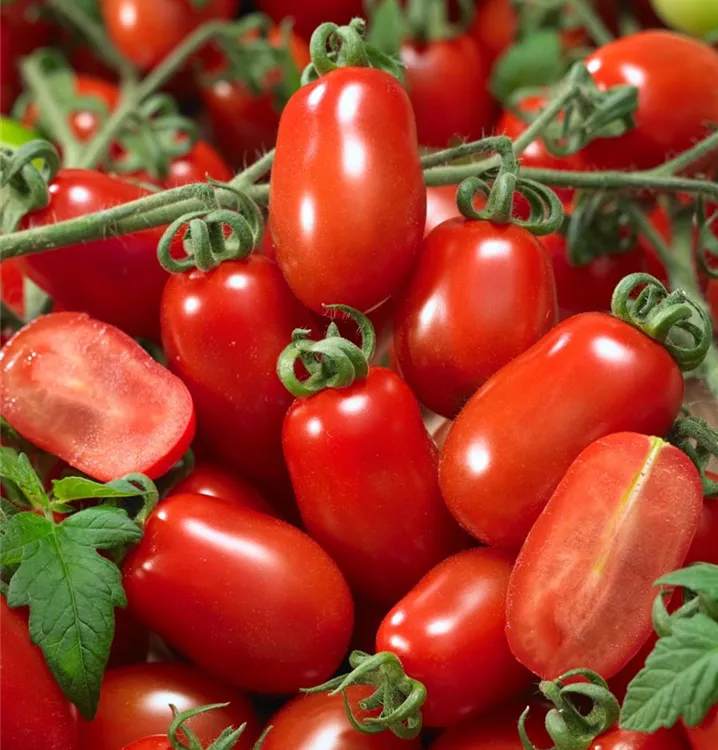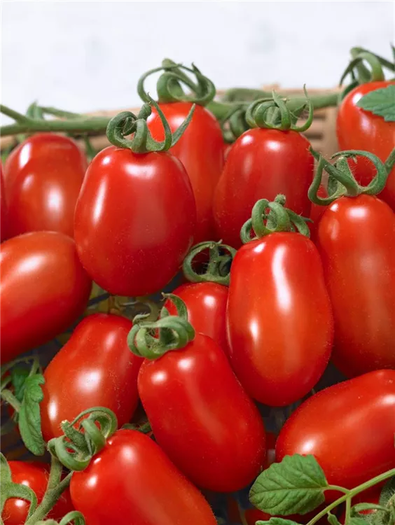 Die Tomate 'Corianne' (Solanum lycopersicum) bildet Früchte, die aromatisch schmecken und bereits ab Juli geerntet werden können. Für das optimale Wachstum der Tomate 'Corianne' werden ein sonniger Standort und durchlässiger, nährstoffreicher Boden benötigt.