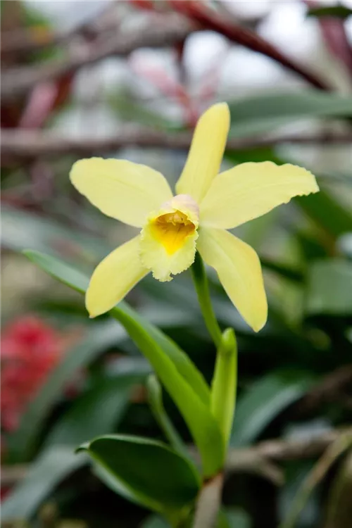 Die Vanille (Vanilla planifolia) ist eine schöne, in verschiedenen Farben blühende Orchidee. In ihrer natürlichen Form ist sie in Südamerika und Mittelamerika verbreitet. Ihre Blüten verströmen einen angenehmen Duft und erscheinen von März bis Mai. Für das optimale Wachstum sorgen ein heller Standort sowie ein spezielles Orchideen-Substrat.
